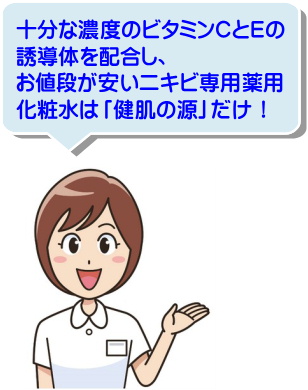 「健肌の源」は、ニキビ肌に効果のあるビタミンC誘導体とビタミンE誘導体をWで配合!